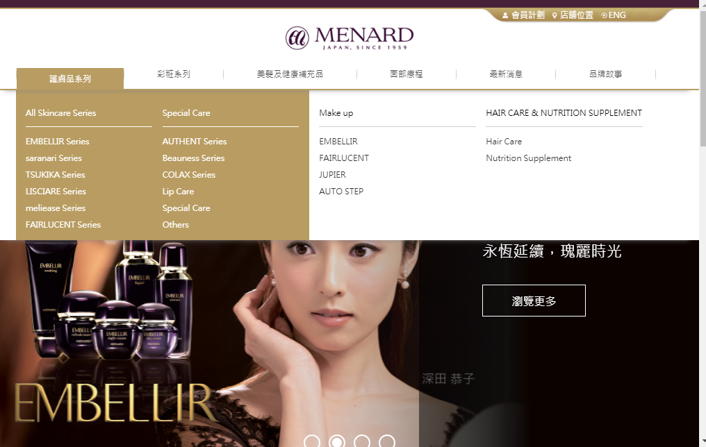 正所謂人靠衣裝,主攻護膚品嘅Menard就深明呢個道理喇,所以整網頁都要整得好睇啲。之前我哋Intimex就同佢哋合作,整咗個靚靚嘅網頁,將唔同種類嘅商品一一列曬出嚟,連埋咁多靚相,絕對係吸引大家眼球嘅好選擇~